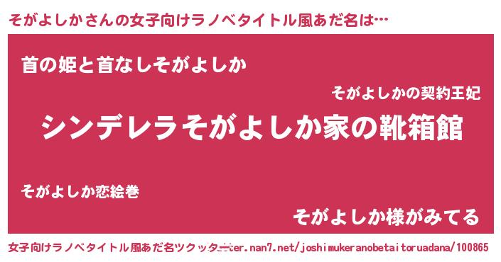 | 意味不明あだ名 | 『とにかく怪しいそがよしか』 |