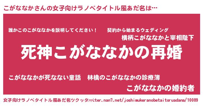 | 男性向けラノベタイトル風あだ名 | 『ノーゲーム・ノーコガナナカ』 |