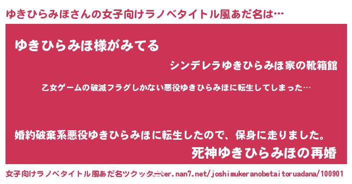 | 意味不明あだ名 | 『住所不定無職ゆきひらみほ(77歳)』 |
