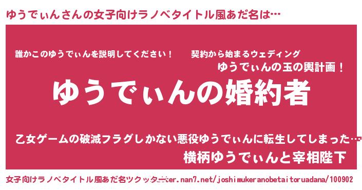 | 胡散臭い通販商品みたいなあだ名 | 『運命の人と巡り会える高級そうな絵画…その名も「ゆうでぃん」』 |