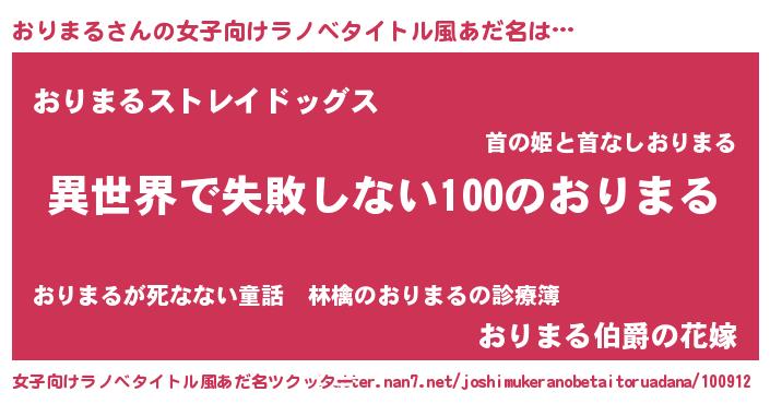 | 男性向けラノベタイトル風あだ名 | 『おりまるという概念が存在しない退屈な世界 』 |
