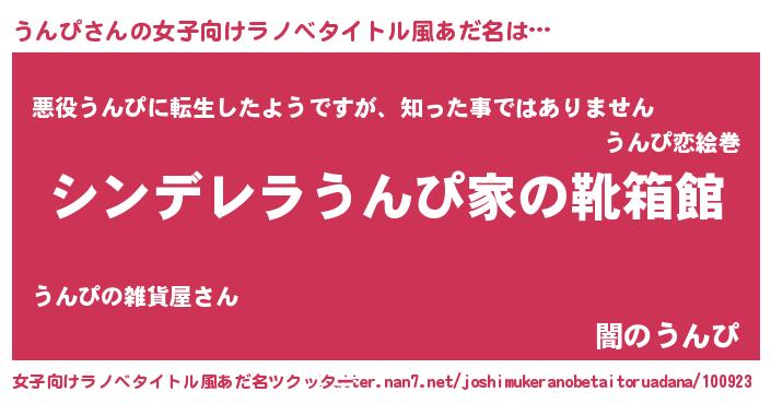 | ヒーロー風カッコイイあだ名 | 『仮面ウンダー』『最強戦士ウンピ』 |