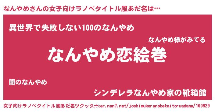| 男性向けラノベタイトル風あだ名 | 『おまえをオタクにしてやるから、俺をなんやめにしてくれ! 』 |