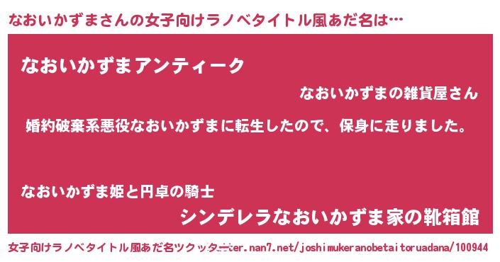 | 男性向けラノベタイトル風あだ名 | 『ナオイカズマスレイヤー』 |