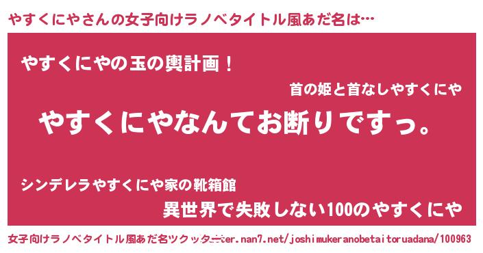 | 肩書あだ名 | 『やすくにや総統』『やすくにや少佐』 |