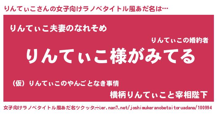 | 男性向けラノベタイトル風あだ名 | 『りんてぃこの嫁は女の子じゃないと思った?』 |