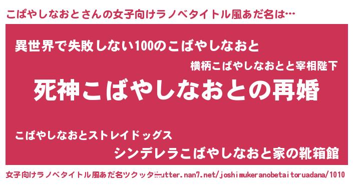 | ヘコむあだ名 | 『こばやしなおと(苦笑)』『こばぷりん』 |