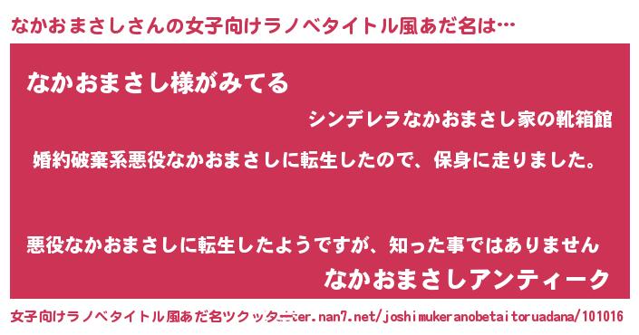 | 男性向けラノベタイトル風あだ名 | 『ナカオマサシスレイヤー』 |