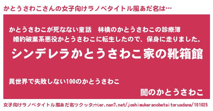 | 意味不明あだ名 | 『住所不定無職かとうさわこ(43歳)』 |