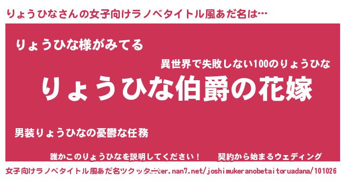 | ヒーロー風カッコイイあだ名 | 『ウルトラりょうひなマン』 |