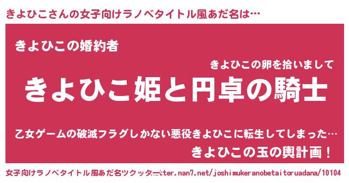 | 男性向けラノベタイトル風あだ名 | 『キヨヒコアートオンライン』 |