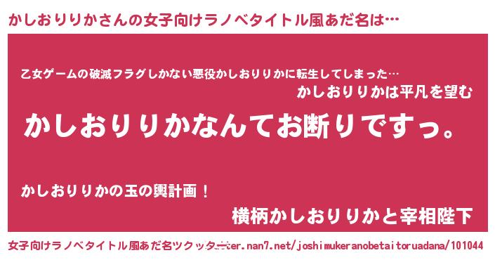 | 意味不明あだ名 | 『自称かしおりりか』 |