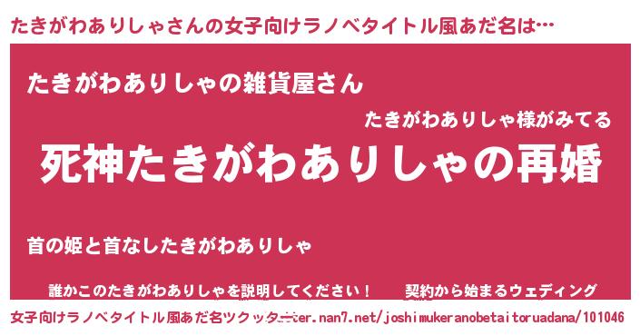 | 男性向けラノベタイトル風あだ名 | 『ノーゲーム・ノータキガワアリシャ』 |