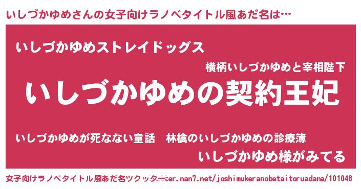 | 胡散臭い通販商品みたいなあだ名 | 『来世でも幸せになれる水素水…その名も「いしづかゆめ」』 |