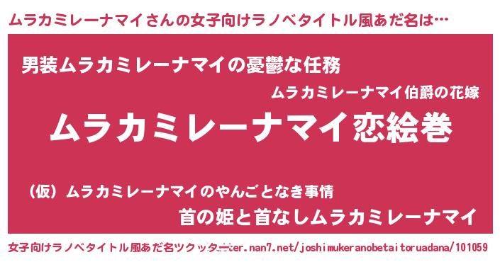 | 肩書あだ名 | 『ムラカミレーナマイ助手』 |