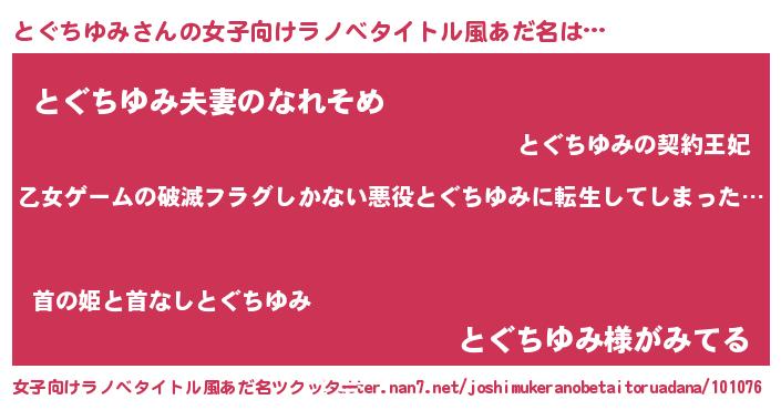 | 男性向けラノベタイトル風あだ名 | 『この素晴らしい世界にとぐちゆみを!』 |