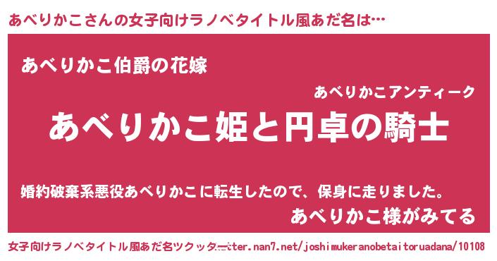 | 胡散臭い通販商品みたいなあだ名 | 『モテモテ間違いなし霊験あらたかなお札…その名も「あべりかこ」』 |
