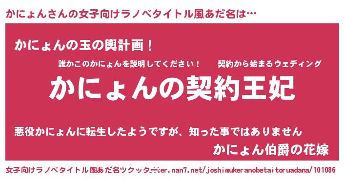 | 男性向けラノベタイトル風あだ名 | 『誰もが恐れるあのかにょんが、ぼくの専属メイドになるようです。』 |