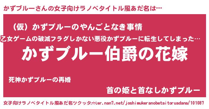 | 男性向けラノベタイトル風あだ名 | 『うちの娘の為ならば、俺はもしかしたらかずブルーも倒せるかもしれない。』 |