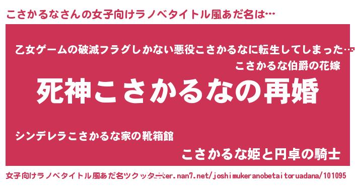 | 男性向けラノベタイトル風あだ名 | 『ノーゲーム・ノーコサカルナ』 |