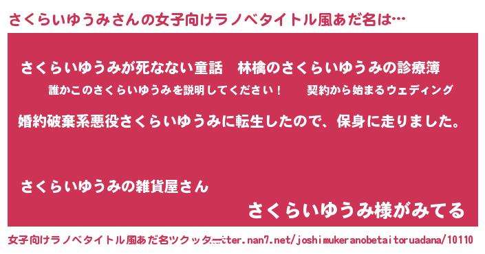 | 胡散臭い通販商品みたいなあだ名 | 『ハリウッド女優が絶賛した世界で10本だけ現存している希少なブランデー…その名も「さくらいゆうみ」』 |