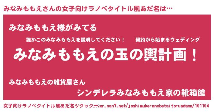 | 男性向けラノベタイトル風あだ名 | 『転生したらみなみももえだった件』 |