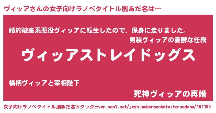 | ヘコむあだ名 | 『ヴィッア(苦笑)』『ヴィっちょ』 |
