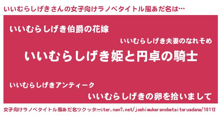 男性向けラノベタイトル風あだ名 | 『いいむらしげきの憂鬱』 |