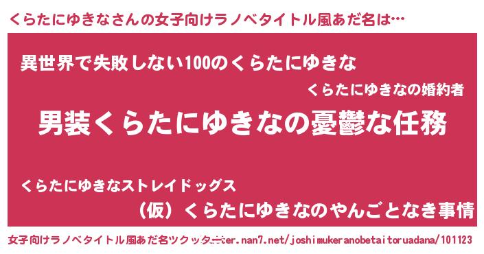 | 男性向けラノベタイトル風あだ名 | 『うちのくらたにゆきなが世界を掌握している!』 |