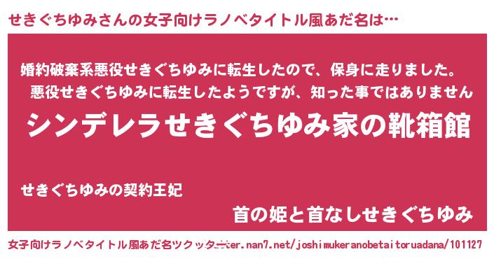 | 男性向けラノベタイトル風あだ名 | 『冴えないせきぐちゆみの育てかた』 |