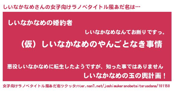 | 胡散臭い通販商品みたいなあだ名 | 『必ず成功するブレスレット…その名も「しいなかなめ」』 |
