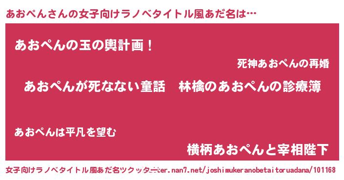 | 欧米人風あだ名 | 『ダレノガレあおぺん』 |