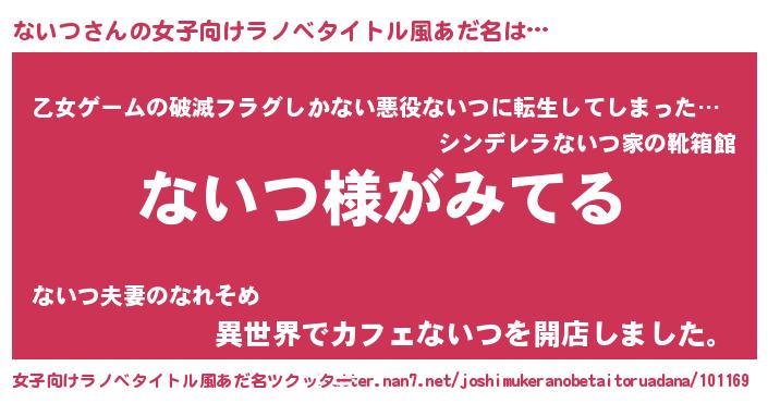 | 男性向けラノベタイトル風あだ名 | 『ないつの嫁は女の子じゃないと思った?』 |