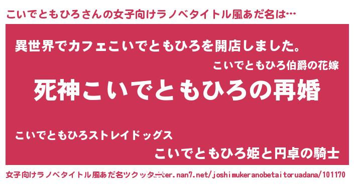 | ヒーロー風カッコイイあだ名 | 『慈愛の使者こいでともひろ』 |