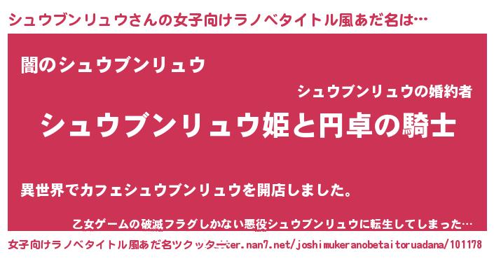 | 男性向けラノベタイトル風あだ名 | 『シュウブンリュウアートオンライン』 |