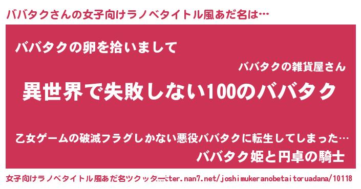 | ヘコむあだ名 | 『ババタク(笑)』『ババぷりん』 |