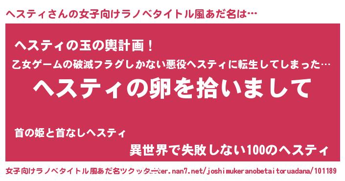 | 男性向けラノベタイトル風あだ名 | 『ヘスティの嫁は女の子じゃないと思った?』 |