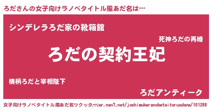 | 男性向けラノベタイトル風あだ名 | 『誰もが恐れるあのろだが、ぼくの専属メイドになるようです。』 |