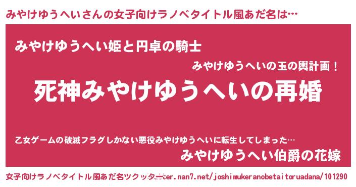 | 伝説のあだ名 | 『救世主となる錬金術士みやけゆうへい』 |