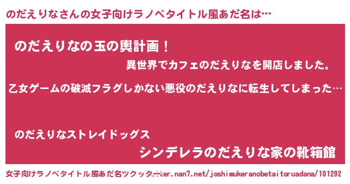 | 胡散臭い通販商品みたいなあだ名 | 『世界中を虜にした世界で10本だけ現存している希少なブランデー…その名も「のだえりな」』 |