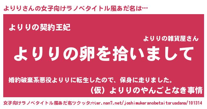 | 胡散臭い通販商品みたいなあだ名 | 『伝統あるペンダント…その名も「よりり」』 |