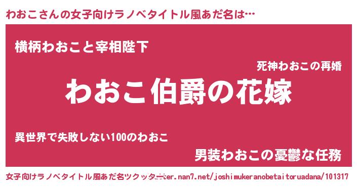 | 意味不明あだ名 | 『わおこフォーエバー』『永久保存わおこ』 |