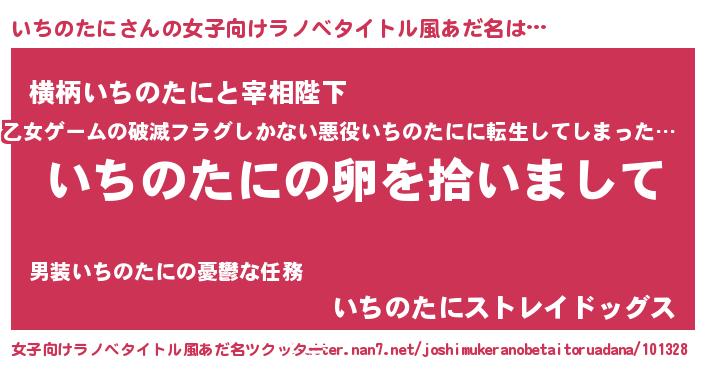 | 男性向けラノベタイトル風あだ名 | 『ダンジョンにいちのたにを求めるのは間違っているだろうか』 |