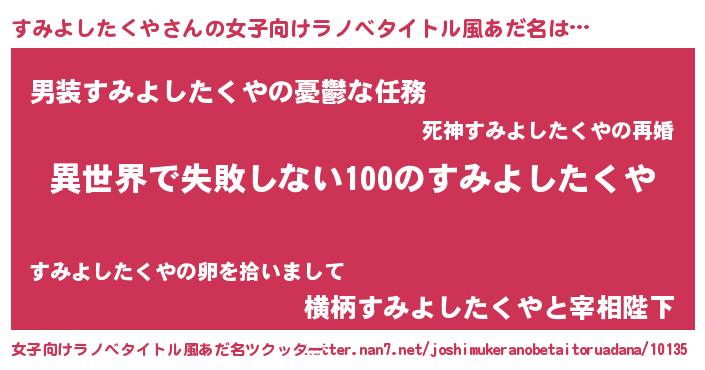 | 胡散臭い通販商品みたいなあだ名 | 『絶対に幸福をもたらす健康食品…その名も「すみよしたくや」』 |