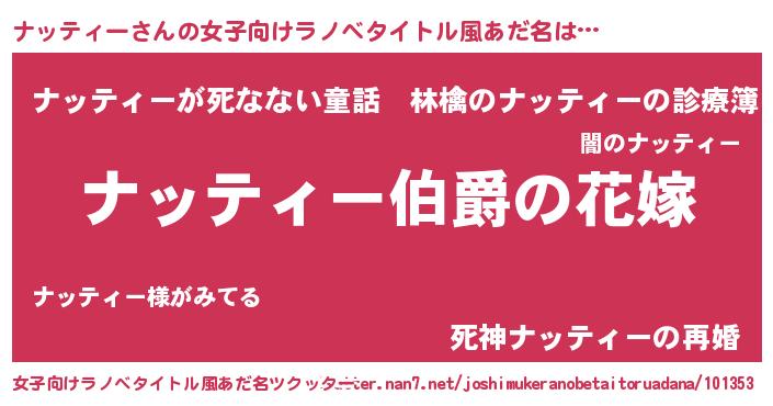 | 男性向けラノベタイトル風あだ名 | 『やはりナッティーの青春ラブコメはまちがっている 』 |