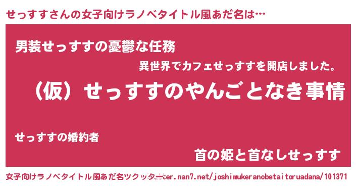 | 男性向けラノベタイトル風あだ名 | 『せっすすの憂鬱』 |