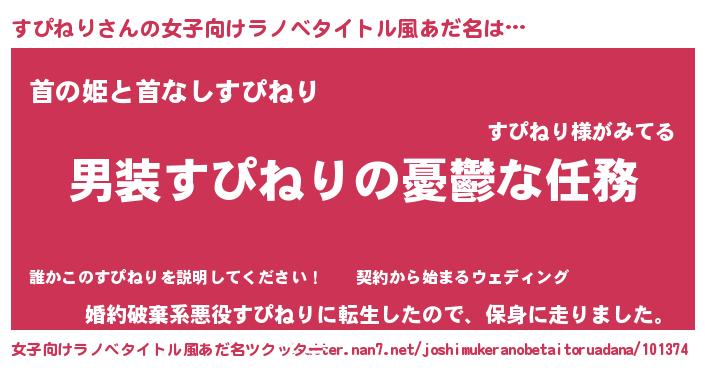 | 意味不明あだ名 | 『ニラ科すぴねり属』『ペロリンすぴねり』 |