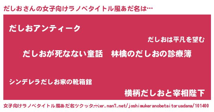 | 男性向けラノベタイトル風あだ名 | 『魔弾の王とだしお』『緋弾のダシオ』 |