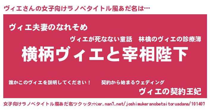 | 男性向けラノベタイトル風あだ名 | 『ヴィエに滅ぼされるだけの簡単なお仕事です』 |
