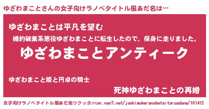 | ポケモン風あだ名 | 『ユザセウス』『ヒユザワマコト』 |